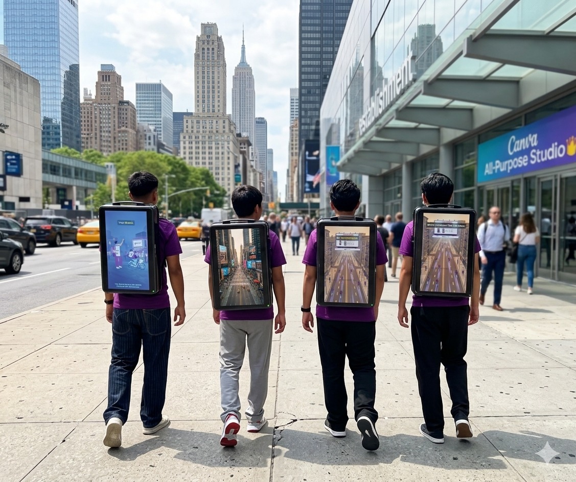 Mobile advertising through walking billboards. Perfect for events and high-traffic areas.